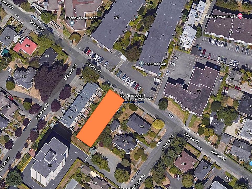 Extra Large vacant lot available in the heart of James Bay. 60' x 164', level, rectangular 9633 SQFT+-.557 Simcoe St between South Turner and Clarence Street. Has recently been zoned - Multi Family, allowing the construction 4-3bdrm townhomes, The project comes with approved Development permit plans or take advantage of recent and forthcoming city zoning changes allowing up to 2.1 x 9633 meaning a possibility of 20,000 sqft of building. Prime location offers - walking to shops, restaurants, schools, community Centre. Plus, only minutes to Downtown, the Inner Harbour, Parliament Buildings, Beacon Hill Park, Fisherman’s Wharf & mere blocks to Dallas Rd ocean front. A great place to create your dreams in an unbeatable location.
