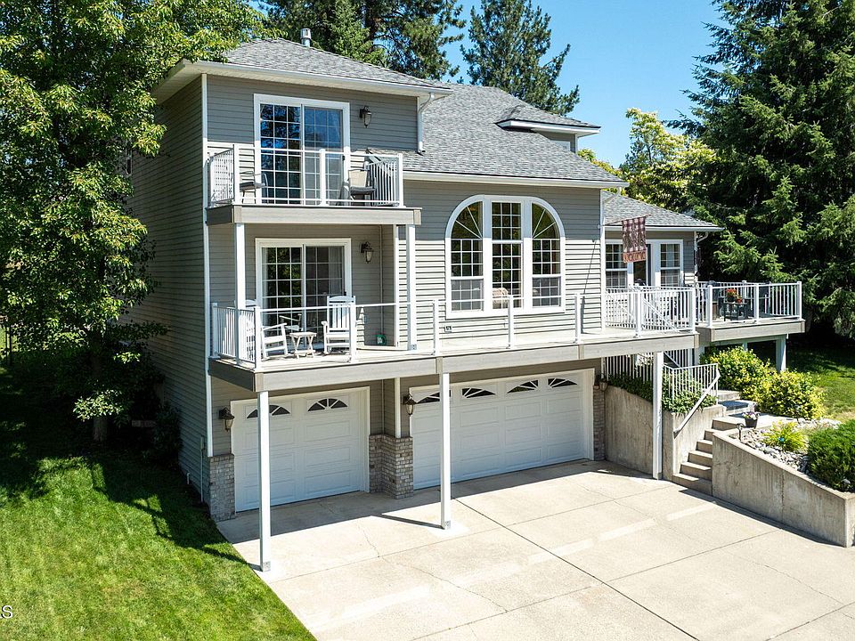 Imagine stepping out your front door and strolling across the street to your own private, gated waterfront park—complete with beach access along the scenic Spokane River. Nestled in the heart of the highly desirable Riverside Harbor community, this thoughtfully designed this spacious 4 bed, 3 bath, 3,212 sq ft home offers filtered river views across the street. Enjoy outdoor living on the new custom front and rear decking, perfect for entertaining or relaxing in the tranquil surroundings. Inside, the home features a Gourmet kitchen with granite center island kitchen with matching glass and granite backsplash,. Massive cathedral ceilings, beautiful hardwood floors, and large windows that fill the space with natural light. MThe primary suite offers private deck access and filtered peaceful river views. The lower level includes high ceilings, a family room, a bonus room, and direct access to the attached 3-car garage. Don't miss this exceptional opportunity to own in one of North Idaho' premier riverfront communities!