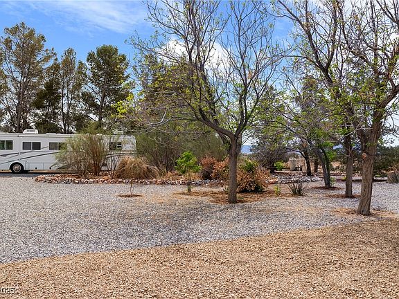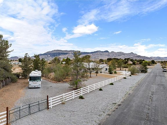 This stunning 1,382 sq.ft. home on the desirable North end of Pahrump shows pride of ownership through countless upgrades and thoughtful, modern style. European-style glass doors and plentiful windows take advantage of the mountainous scenery all around, while zebra shades allow the right blend of natural lighting and privacy. A 3 bedroom, 2 bathroom split open floorplan seamlessly connects the well-appointed living, dining, and kitchen areas. Granite countertops grace the fully modernized kitchen with custom cabinets. Plenty of room to display your treasures on the built in potshelves. The ~1.2-acre lot features desert landscaping with mature trees, providing plenty of low-maintenance space to enjoy from the comfort of two private courtyards and a covered back patio complete with ceiling fans. RV parking available on either side of the home. This beautiful home is an absolute must-see!