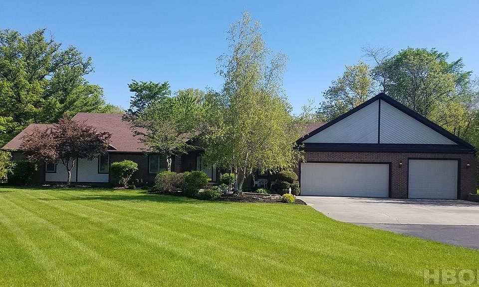 TAWA RIDGE SUBDIVSION/LIBERTY BENTON SCHOOLS/BLANCHARD TWP. Situated on the west side of Findlay, OH only 6 miles from town, this sprawling ranch offers quality construction, open living floor plan. 2817 SQ FT on the 1st floor living and full finished 2817 SQ FT on the lower level w/walk out to large paver patio overlooking natural pond and natural area, very scenic. This 3/5-bedroom ranch has 2.5 bathes on 1st floor and full bath w/ sauna and large hot tub on the lower level, w a total in house of 3.5 baths. Lower level has 2 rooms which could be used as bedrooms, entertaining area w/bar, countertops, refrigerator and sink. Open stair case, bookshelves, pool table remains. Lots and lots of storage, shuffle board. Chimney is designed for an extra wood burning stove in lower level. Tile limestone and granite floor in Living room and kitchen have radiant heated floors. Kitchen has full appliances w/ Jenn-Air cooktop and granite countertops. Large vaulted ceiling in this area, breakfast eating area over looks rear yard. Enclosed sunroom on 1st floor over looks rear yard. Office w/ French double doors and built in bookcase, just off the main living area and large foyer. The utility room is fabulous w/ lots and lots of storage, sink, refrigerator, countertop, sewing, desk area w window and built in ironing board. Large 4 car garage attached w/ exterior double utility side doors. Association fees are $600. Per year which includes maintenance of the common road, electric street lights, snow removal cleaning. 500-gallon propane tank is rented. Hempy water system treatment $88.00 per month. New roof 2005, 2018 an area 15x30 replaced w new skylight and flashing around fireplace. New flooring in master area and bath 2018.