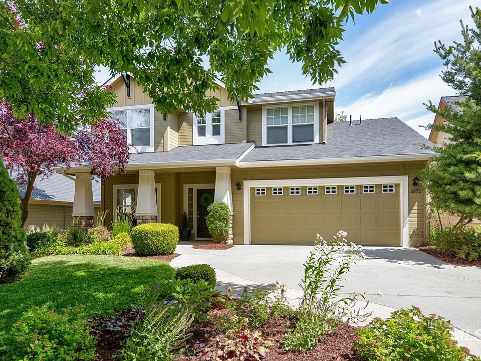 Impeccably maintained and beautifully updated, this 5-bed, 3.5-bath Hidden Springs home offers 3,013 sq ft of spacious living. The light-filled main level features vaulted ceilings, an open floor plan, and an updated kitchen with granite countertops, tile backsplash, and a large island perfect for gathering. The primary suite and dedicated office are on the main floor for added convenience. Downstairs, enjoy a large rec/bonus room, two bedrooms, a full bath, and a generous storage room—ideal for hobbies or gear. While the yard is low-maintenance, you're steps away from expansive open space and foothills trails. Hidden Springs residents enjoy pools, parks, a fitness center, organic garden, and over 800 acres of open space with trails and abundant wildlife. Come experience the quiet, active lifestyle that makes this community one of the most desirable in the valley.