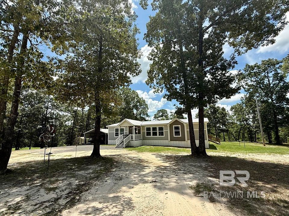 This homestead, hunting & recreational tract is situated a few miles outside of the quaint town of Chatom, Alabama. Paved road frontage on Ray Coaker Hwy (CR-1) gives direct access from two entrances to this property. The 3 bed / 2 bath double-wide mobile home manufactured in 2017 has been very well taken care of. Its features include: walk-in closets, upgraded counter tops, and has both covered front and back porches providing exceptional views of the open yard. There is also a brand new 16’ x 36’ tiny home, ideal for a full-time residence, guests, or even potentially a rental. This tiny home is located a few hundred yards away, and out of sight of the homestead. Offered as a turn-key package, with all the equipment to upkeep the land & farm for wildlife. The package includes: 2022 Kubota MX5400 tractor 4x4 with loader, forks & implements, a Honda Pioneer 1000-3 buggy, a man cave/coffee shed with a built-in bunk bed, (2) equipment storage sheds with a covered game skinning station, a 14’ x 36’ metal barn & a two-car carport. There is an internal trail system in place providing easy access to several established food plot locations throughout the property, one of which has a nice shooting house. Deer, turkey, and small game inhabit this sanctuary and are viewed frequently from the porches of the home. Don’t miss this opportunity! Shown by appointment only. Buyer to verify all information during due diligence.
