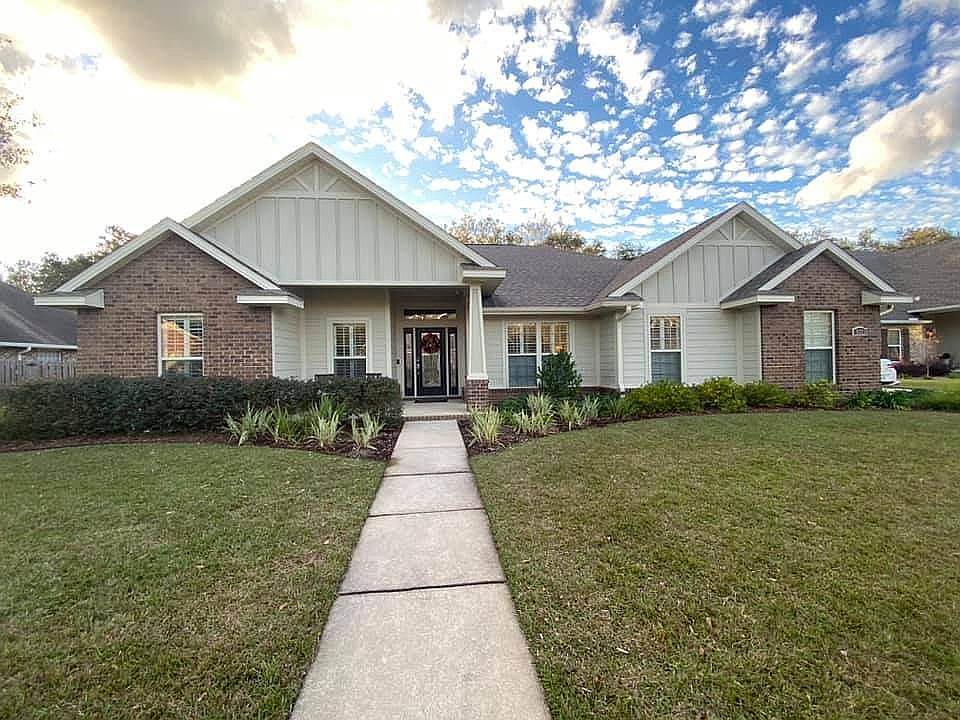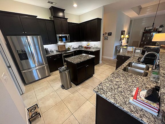 This stunning single-level residence offers 2,617 sq ft of bright, open living in a tranquil cul-de-sac setting. With 4 bedrooms and 3 full baths, this 2014-built home delivers popular modern finishes plus resort-style amenities. The moment you arrive, you’ll notice the meticulous landscaping, ambient down-lighting front & back, and generous driveway/parking area. Underground utilities maintain a clean, unobstructed view. Step into the foyer and be greeted by high tray ceilings, custom plantation shutters, and an airy open floor plan. The heart of the home is the spacious kitchen/dining/living zone, featuring granite countertops, tile backsplash, under- & above-cabinet lighting, and a beautifully styled shiplap island and fireplace surround. Double doors open from the living space into a truly private retreat: a fully enclosed saltwater pool with generous decking, a calming landscaped backyard, secure lockable access, and a full-feature upgraded cleaning/filter system. Interior comforts include a large master suite with walk-in closet, soaking tub + separate shower, and elegant double vanities. The remaining bedrooms are well sized and the home is designed for versatile living, entertaining, or quiet family time.