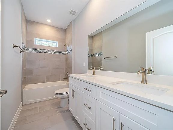 Modern 4-bed, 3-full-bath (2022 build), 2,080 sq ft. Open plan, durable floors, tile baths. Kitchen: SS Samsung appliances, W/D included. Master suite: tray ceiling, His/Hers walk-in closets, dual sink vanity, glass shower. 2nd bed is a full In-Law/Guest Suite w/ private bath. 3rd bath also has dual sinks.