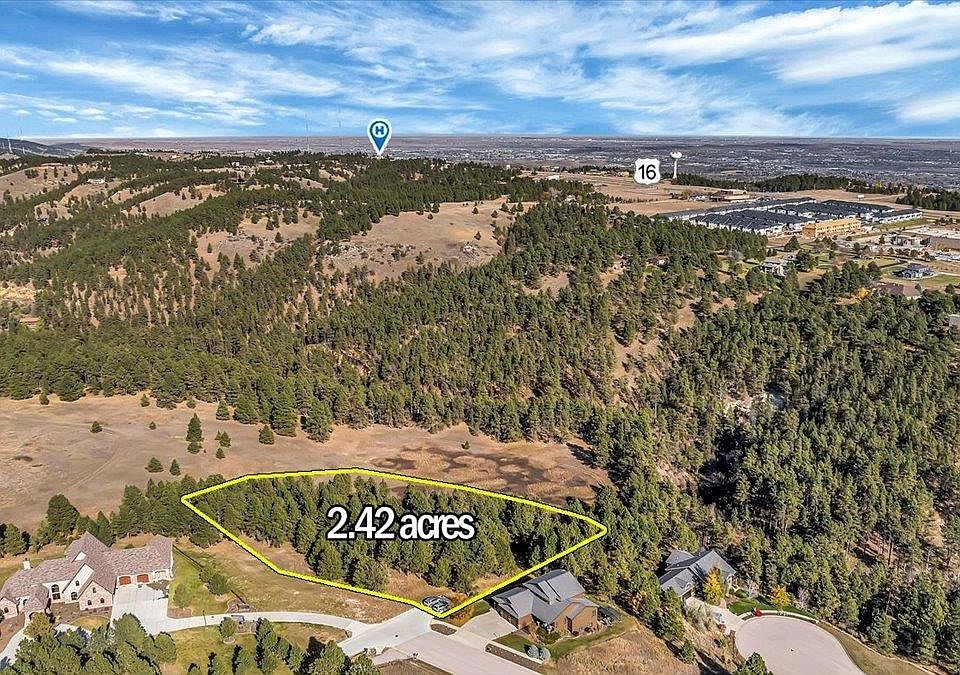 Listed by Ashley Handcock, RE/MAX Advantage 605.393.5867. Build your dream home on this 2.42-acre pine-covered lot on Villaggio Lane. This exceptional setting within Rapid City limits offers Black Hills views and convenient access to everything the southwest side has to offer. Situated near the end of the street, this gently rolling homesite provides the freedom to design the home and lifestyle you've envisioned. Surrounded by impressive neighboring properties and just minutes from Monument Health, Black Hills Energy, and local dining, this rare find combines natural beauty, accessibility, and upscale neighborhood appeal. Grab your favorite builder and start planning your perfect Black Hills home today.