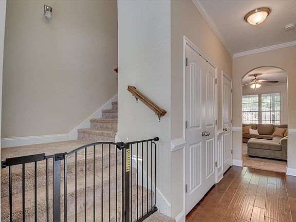 Discover the charm of Creekside at Connor Place, a gated community in the heart of Evans. This delightful 3-bedroom, 2.5-bath home, built in 2015 by R.T. Bailey Construction, sits on a peaceful cul-de-sac. Step inside through the covered front porch, where a hardwood entryway welcomes you into a cozy living room featuring arched doorways and an electric fireplace. The open layout connects seamlessly to the kitchen, equipped with granite countertops, stained cabinets, stainless steel appliances, a central island, tile backsplash, hardwood floors, a spacious corner pantry, and a sunny breakfast nook—ideal for hosting. Upstairs, the primary suite boasts an extra sitting area and a private bath, while two additional bedrooms share a convenient Jack-and-Jill bathroom. Natural light pours in through the home's generous windows. The backyard features a covered patio, privacy fence, and an in-ground sprinkler system for easy upkeep. Enjoy the security and amenities of the Connor Place HOA, including gated access, weekly trash service, front yard maintenance, and a community pool.