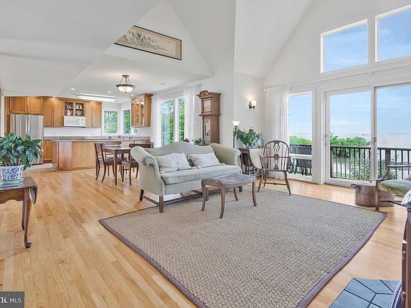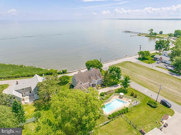 Beautiful Cape Cod with an Open Contemporary Design! Walls of windows provide unobstructed water views of the Chesapeake Bay from every room! Vaulted ceilings, beams and open living space are highlighted throughout this beautiful home. Main level primary suite with open water view, spa like bath and walk in closet. A Pellet stove adds warmth to the living area. The open kitchen design will delight any chef with plenty of prep area, cabinetry and includes a pass thru pantry. 2 second level bedrooms boast water views and are connected with a breezeway and overlook. A separate sitting room is a highlighted feature of one upstairs bedroom. Crystal clear fenced, inground gunite pool with built-in spa. The surrounding mature landscape is full of native plantings and virtually maintenance free. Detached 2-car garage with walk up unfinished studio space with water views. Franklin Manor provides wonderful community amenities include, fishing piers, beaches, marina, community fields and playground!