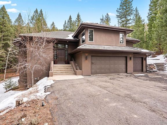 Discover an extraordinary mountain retreat on 3 acres in the beautiful Hangen Ranch valley of Evergreen. This distinguished residence offers an exceptional blend of luxury living & outdoor adventure. The 4,694 sqft home seamlessly blends with Colorado's natural splendor, offering 4 bedrooms and 4 baths across three thoughtfully designed levels. An elegant interior showcases a flowing open-concept, perfect for entertaining. The gourmet kitchen is a culinary dream, anchored by a Viking range & expansive center island. Rich wood floors & large windows create an inviting, light-filled atmosphere throughout the main level, while a spectacular 3-sided fireplace, visible from the living room, dining area & kitchen is a captivating focal point. The upper level houses a luxe primary suite, featuring new carpet, adjacent office space & heated bathroom floors! The lower-level walkout has 3 add'l bedrooms, a freshly painted oversized rec room (the pool table is staying!), perfect for hosting a crowd. Outdoor living reaches new heights with multiple deck spaces, each offering unique perspectives of the surrounding landscape. A gas firepit on the deck in the open meadow creates an ideal setting for stargazing & observing local wildlife. The property's location offers unparalleled access to outdoor recreation, with immediate proximity to the Alderfer 3 Sisters Park trails. Enjoy easy access to hiking, biking, rock climbing & Evergreen Lake. The home's thoughtful positioning provides shelter from afternoon sun and strong winds while maintaining quick access to local amenities. Modern comforts include high-speed internet, 3-car garage with workshop, & energy-efficient features throughout. Set within a welcoming community known for its seasonal gatherings and social events, this residence offers the perfect balance of luxury, comfort, and adventure in one of Colorado's most sought-after locations. All that and a heated henhouse - with room for 5 chickens!