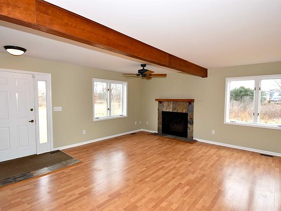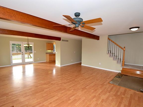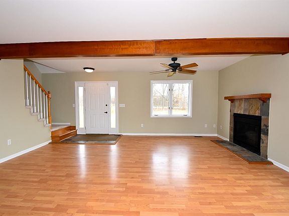 Move right in this attractive, crisp Cape Cod style home on 3.65 beautiful acres! Great open flr plan w/many updates, including: fresh paint, newer laminate flooring, stone c-tops & more! Pleasing entry w/slate flr leads to a spacious GR w/plenty of natural light, hard surface flrs, FP w/slate surround & beamed ceiling. Prime dining area opens to GR & kitchen w/dr wall to lrg rear deck & yard. Sharp kitchen w/abundance of hrdwd cabs & loads of c-top space (all APPL included). Nice 1st flr laundry rm. Mstr bath could be on 1st flr or 2nd flr. Sunny 1st flr bdm has 2 roomy closets, laminate flooring, ceiling fan/light & multiple windows. Main level bath w/maple cabinets & tiled diagonal flr. Upstairs offers 2 good-sized bdrms; one w/walk-in closets & ceiling fan/light. 3rd bdrm has 2 closets. Updated bath w/new light fixtures & c-top w/2 sinks & tub/shwr. Basement is just waiting to be finished! Lovely approach w/paver walkway & inviting, grounds surrounded by mature trees & garden area.