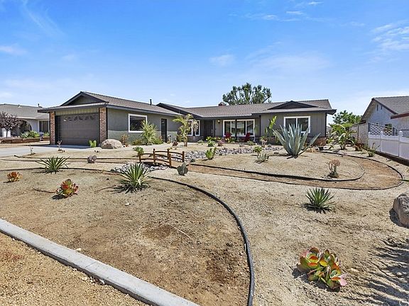 Bluff side!!4 bedroom 2 bathroom & huge office plus a flat lot with MD Barn! GIDDY UP!Just in time for fall gatherings,open spacious family room with custom travertine fireplace.Vaulted beamed ceilings. New sliding glass doors and windows. Home features an expansive kitchen with tile floors, huge fridedaire refrigerators and freezer. 5 burner professional series cooktop/oven & stainless appliances.Large center island and window sink. Kitchen has open space to family room. Dining room has chair rail and crown molding.Large main bathroom with tub and lots of counter space.Large master Bedroom with crown molding. New closet doors. Has slider to backyard w/covered patio. Master bathroom new floors & a pocket door.Zen bedroom was used as a gym.Front bedroom is currently a guest bedroom.Huge office/library perfect for those that work from home or just like an office. Outdoors features a flat usable lot your horses will love the large turnout. MD barn has three stalls with outside pipe corrals & tack room. Stalls have auto water. Chicken coop behind the barn. Side yard has a dog run, the other side has large RV parking area. Exterior is wired for 220V.Home has newer insulation for efficiency. Also features fully integrate smart features including door locks, alarm, AC/Heat controls from your phone.Also features a reverse osmosis water system, new insulation, desert landscape and inside laundry room. Your new home is waiting for you!