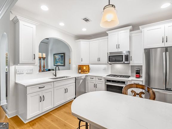 Welcome home to the Villas at Laurel Springs! A Stylish Stepless-Entry Townhome with Primary on Main in Prime Suwanee Location! Thoughtfully renovated and move-in ready, this home combines modern upgrades with timeless details in a community that offers both convenience and lifestyle. The vaulted primary suite on the main level offers everyday comfort, while soaring ceilings and two solar tubes flood the home with natural light. Fresh neutral paint and all-new hardwood flooring on the main level create a bright, inviting feel throughout. The open floor plan features an updated kitchen with new cabinetry, countertops, and appliances, open to the family room for seamless living. A separate dining room with a tray ceiling adds elegance, while the flex room is perfect as a sunroom, breakfast nook, or home office. A convenient pantry and main-level laundry complete the thoughtful layout. Two secondary bedrooms with adjacent full baths-one on the main and one upstairs-offer flexibility for guests, work-from-home space, or hobbies. Tasteful finishes including arched openings, generous millwork, and a stone-tile fireplace elevate the style of this home. Outdoor living is just as appealing, with a welcoming covered front porch and a private backyard featuring a stone patio with a pergola and fenced yard-ideal for relaxing or entertaining. The home also includes a two-car garage and level driveway for easy access. The Villas at Laurel Springs community enhances your lifestyle with walking paths, tennis courts, and a clubhouse complete with an exercise room. Conveniently located near Suwanee and Johns Creek, you'll enjoy shopping, dining, and parks at your fingertips. Plus, the home is zoned for top-rated Forsyth County schools with easy access to Peachtree Parkway, GA-141, and GA-400. Offering the best of convenience and design, this is the one you've been waiting for.