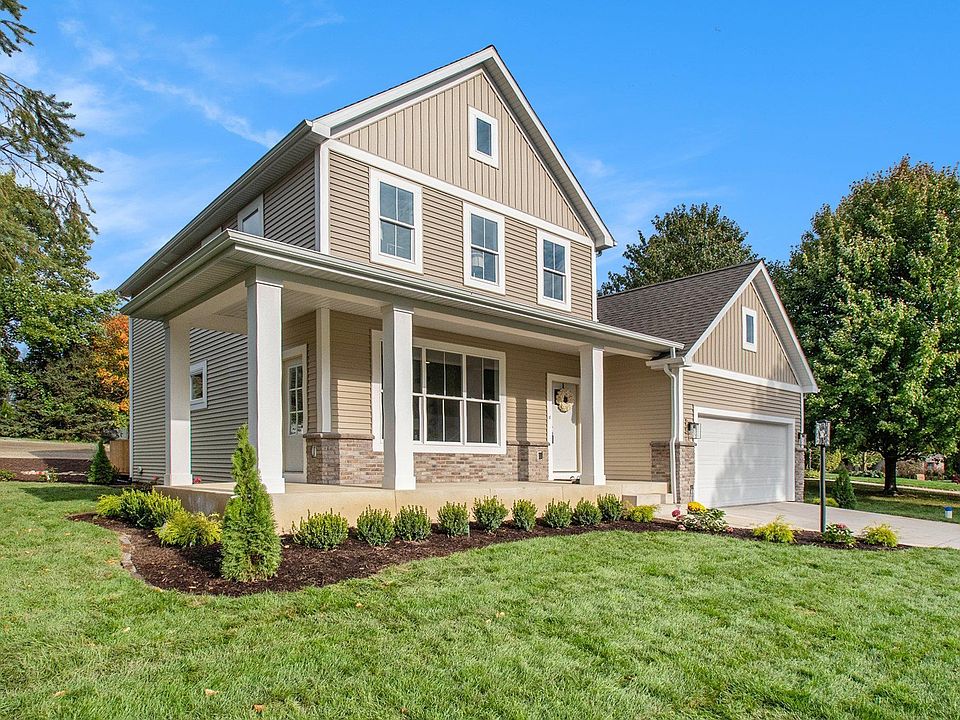 Enjoy Irish Custom Homes recently completed, stunning new build in one of New Carlisle's most sought after neighborhoods, Stone Oak Estates. Seller is motivated to sell this home to make room for our new 2024 inventory. Land contract/seller financing available for well qualified buyers with interest rate as low as 4.9%. Introducing "The Marc", Irish Custom Homes' newest two-story floor plan, a luxurious 3-bedroom, 2.5-bathroom home on a large corner lot in the blue ribbon award winning New Prairie School System. Wrap-around front porch, a seamlessly flowing open-concept living area, dining area, and stunning kitchen will make you want this house to be your new home. The kitchen boasts a walk-in pantry, quartz countertops, a slide-in gas range, stainless hood vent, and a generously-sized central island with bar seating, making it an ideal space for both cooking and entertaining. 9ft ceilings on the main floor, luxury light fixtures, porcelain tile, custom built-ins and detailed trim work throughout. Upstairs, the tranquil haven of the primary suite, complete with elegant tray ceilings, a spacious walk-in closet, and a private en-suite bathroom featuring a dual sink vanity and custom marble shower are your private sanctuary in your own home. Second floor laundry makes life easier and porcelain tiled bathrooms exude sophistication. From its light-filled living spaces to its charming wrap-around porch, this well designed home offers an upscale and functional living environment. Call today to schedule your private tour.