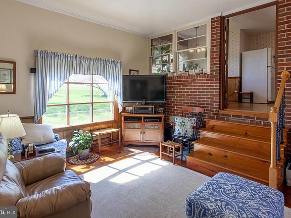 Well cared for all brick ranch on 2ac w/ 4 bay storage shed/work area in private back yard, backing to farm land. Full bsmnt & over sized garage. Living rm w/ stone gas fireplace & heart pine floor. Updated kitchen w/ newer oak cabinets & granite counters. Eat in breakfast area & separate dining rm. Hardwd fls in kitchen & dining.Beautiful Sunroom off Kitchen. 3brms converted to 2bdrms & 2nd bath.