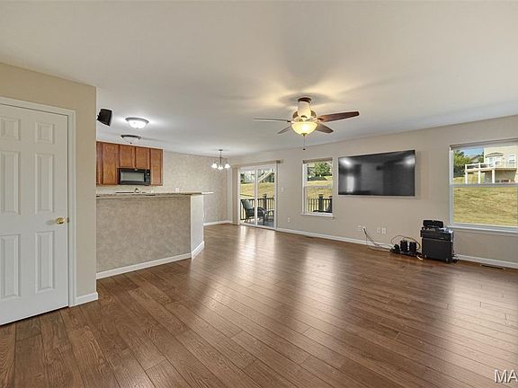 Welcome to 5576 Wavecrest Circle, located just minutes from Downtown Cottleville! This meticulously maintained 2-story townhome offers the perfect blend of comfort, convenience, and low-maintenance living. Step inside to find a spacious main level featuring a bright living room complete with a surround sound system—perfect for movie nights or entertaining. Upstairs, the primary suite is a true retreat with two massive walk-in closets, dual sink vanity, separate shower & tub, and easy access to the 2nd-floor laundry. The 2nd bedroom has it's own walk in closet and a full bathroom in the hallway. Outside, enjoy a low-maintenance composite deck plus a concrete patio—great for summer cookouts or relaxing evenings. The finished basement extends your living space with another surround sound setup, ideal for game days or a cozy retreat. The 2-car garage and HOA-maintained yard and landscaping mean you can focus more on enjoying life and less on chores. Located just a short golf cart ride or quick drive to downtown Cottleville, you’ll love the access to local shops, restaurants, and community events. Don’t miss this opportunity to live in one of the most desirable areas in St. Charles County—schedule your showing today!