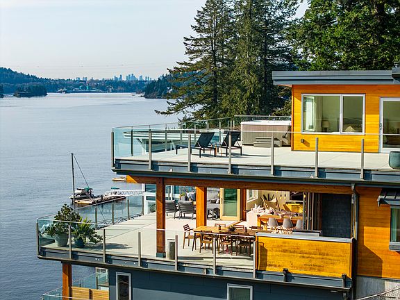 Experience true waterfront luxury in this modern 2018-built Woodlands home. Thoughtfully designed with seamless indoor-outdoor flow, eclipse doors open to expansive decks & panoramic views of Indian Arm. The open-concept layout features a gourmet chef’s kitchen, elegant living/dining areas & stunning ocean vistas throughout. Upstairs includes two spacious bedrooms and a dreamy primary suite w/ private deck & hot tub. A main-floor office/bedroom adds flexibility & a self-contained 2-bed suite offers income potential or guest space. Tons of storage, flat driveway & oversized 1,119 sqft garage w/ 11-ft ceilings. The ultimate in West Coast lifestyle w/ access to your private, deep-water dock to enjoy boating, paddle boarding & swimming. You will feel like you are on vacation every day.