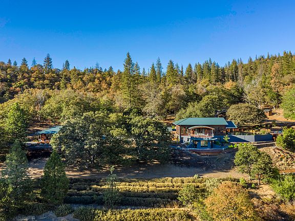 One-of-a-kind secluded family compound with resort-quality construction, thoughtfully designed by an award-winning local architect. The fully-surveyed 100+ acre property features three separate finished living areas including a three-level main home, guest cottage, and detached office suites — all with fire-resistant reclaimed old-growth redwood siding and metal roofing. Unparalleled panoramic views of surrounding peaks and undeveloped government land from four unique redwood decks. High-end finishes throughout must be experienced in person! The grounds include a gorgeous heated Pebble Tec pool with remote-controlled safety cover, extensive dry-stack artisan rock terracing, circulating pond with waterfall, raised garden beds, fruit trees, and lavender fields. Outbuildings include a detached garage shop, tool shed, well house, as well as an additional 20x24 building pad approved for a 2-story structure. Inquire for details!