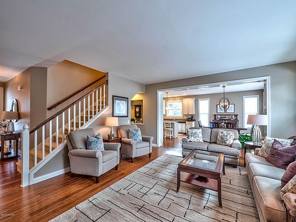 Welcome to Grand Colony, a community of free standing condos and walking trails w/natural woodlands in Portage Schools, Texas Twp. Exceptional AVB quality is felt throughout this 5bedrm, 3.5bath home w/3,958sf fin. and 3 car garage. Open living concept boasts high ceilings and an abundance of natural light and LR w/gas FP. Gourmet kitchen w/ white glazed cabinets, quartz counters, s/s appliances, island w/snack bar seating and dining area w/slider and views of the tree lined backyard. ML master suite has a tray ceiling, custom tile shower, soaking tub, dual vanities and 2 walk-in closets. 2nd bedrm, half bath, and laundry rm complete ML. UL has 2 addt'l bedrms and full bath. LL offers a huge family rm, 5th bedrm, full bath, workout rm and storage. No-step front entry, 3' wide doors and hallways. Conveniently located to highways, restaurants, shopping.