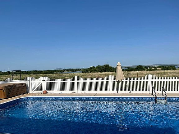 Beautiful Waterfront & Mt Scott view from your back porch, with an option to buy an additional acre to secure that view. 16x36 in ground Pool with new vinyl liner/sand filter 2024. New Paint throughout. New roof 2022, high wind lifetime shingles. New carpet to be placed in all bedrooms. Home includes an oversized living room with another sitting room adjacent that can be used/converted as an office or formal dining. Safe room in one of the closets of the master bedroom. Double pane vinyl windows. CHA. Aerobic septic system. Inside laundry room. Extensive porches and back patio.