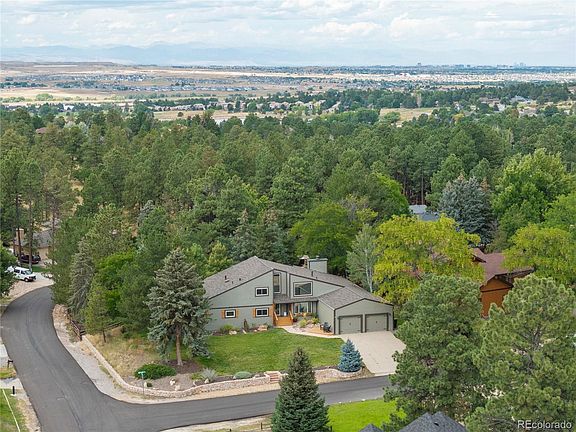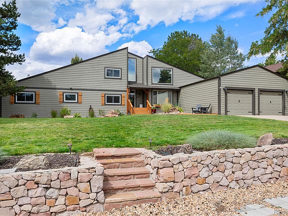 This home in The Pinery stands out with striking expressionist architecture, defined by its angular exterior and expansive windows that invite the outdoors in. Wildlife is part of the experience here, with deer often wandering through the property. Step inside to a vaulted living room where exposed beams and soaring ceilings create an impressive first impression. A new electric fireplace and walls of glass make it a wonderful place to hang out with family or friends. The main level features refinished hardwood floors and an updated kitchen with quartz countertops, a Café refrigerator and dishwasher, and a bar fridge. A wood-burning fireplace brings warmth to the dining room with access to the upper covered deck. The laundry room, mud room and a half-bath as conveniently located as you enter the home from the garage. Upstairs, a loft area offers space for an office or guest room along with a half bath with custom iron railings. The lower level is home to a generous primary suite with a walk-in closet of your dreams, along with a five-piece ensuite that includes a soaking tub and a large enclosed shower. Two additional light and bright bedrooms on this level share a bathroom with a dual vanity. The finished basement adds even more possibilities with a bedroom and ensuite bath, a flexible room that can serve as a theater or craft space, and a large recreation room with a bar. A sunroom extends off the walk-out basement and creates an ideal setting for plant collections. Outside, raised garden beds are fully fenced to protect your veggies from wildlife, a hot tub invites year-round relaxation, and multiple decks connect the living spaces to the outdoors. The primary has a sliding glass door with access to the lower deck, creating an indoor-outdoor connection. Class IV impact resistant roof was installed in 2023. Set on a third of an acre, this property offers an uncommon combination of architectural character, thoughtful updates, and a natural setting within The Pinery.