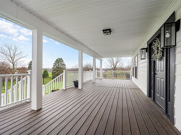 Nearly every major mechanical and cosmetic component has been replaced: roof, vinyl siding, windows, doors, furnace, on-demand water heater, electrical, plumbing, and a brand new septic leach field. Exterior highlights include a fully fenced wrought iron yard, a new paved driveway, and an expansive 40-foot covered Trex decking front porch spanning the full width of the home.