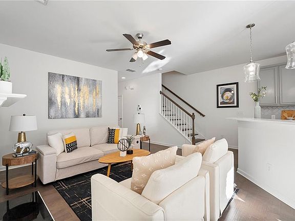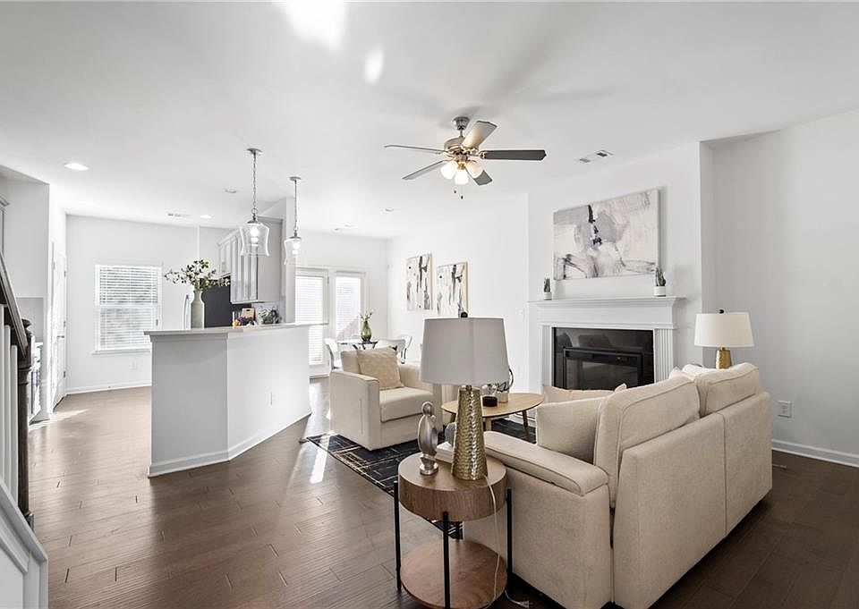 Experience the perfect blend of style and functionality in this stunning 3-bedroom, 2.5-bath townhome filled with abundant natural light. The main level features an open-concept layout with a modern kitchen equipped with sleek QUARTZ countertops, beautiful light gray cabinets, a STRIKING subway tile backsplash in a unique herringbone pattern, and stainless steel appliances. Upstairs, the convenient laundry area is thoughtfully placed near all bedrooms. The home is ALL HARDWOOD throughout, adding a cohesive and elevated feel to every level. Retreat to the luxurious primary suite, offering a spa-like bath with a separate soaking tub and shower, a double vanity, and a spacious walk-in closet. The primary bathroom includes upgraded tile surrounding the tub for an added touch of elegance. Two additional upper-level bedrooms provide comfort and flexibility for guests, family, or a home office. Step outside to a fully fenced private yard, perfect for relaxing or entertaining. Additional conveniences include a 1-car garage and a driveway with space for two more vehicles. Located in the desirable Belmont Hills community in Lithonia, this home offers easy access to shopping, dining, Covington Highway, and I-20. With HOA-maintained lawn care, you can spend more time enjoying your beautiful surroundings. Don’t miss this opportunity!