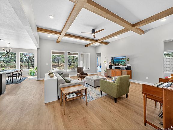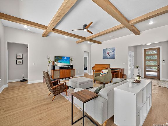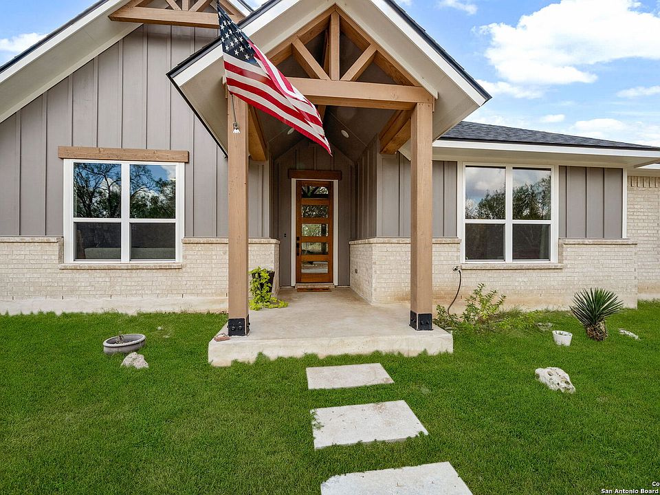 Peaceful country living on 11.5 acres in this custom 2024 Tilson Canyon D. Thoughtful 5 bed, 3 bath design with open layout, Drift of Mist walls, and Springfield Oak LVP flooring. Chef's kitchen offers Espresso maple cabinets, Snow Peak quartz counters, and Retro Cube tile. Primary suite features a freestanding soaking tub, walk-in shower with designer tile, and dual vanities. Energy-efficient with foam insulation, 15 SEER HVAC, and Low-E windows. Exterior includes Acme Winterstone brick, Dorian Gray board-and-batten, a covered back porch, and a freshly laid road base leading to the property-just minutes from Devine yet a world away from the noise. Seller is a licensed Texas real estate sales professional.