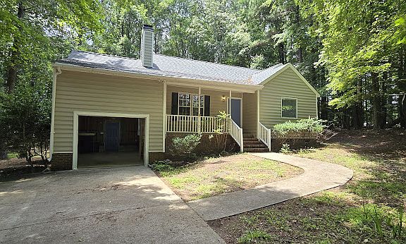 Newly renovated home in a peaceful setting on a large wooded lot. Three bedrooms, two baths, laundry, wood burning fireplace. New refrigerator, dishwasher, microwave. All new paint and flooring. Large single car garage with storage, paved driveway with two parking spots, and exterior storage on rear of house, peaceful porch and new large deck.