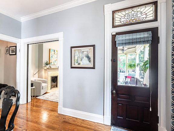 Decorative fireplacesBeautifully renovated primary baGleaming hardwood floorsOriginal stained glassGorgeous natural woodworkSpacious brs
