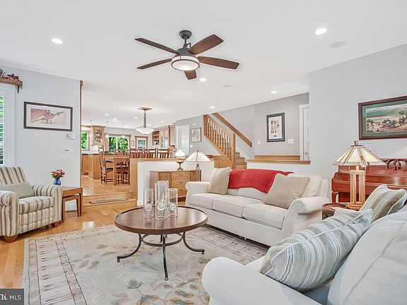 Discover the perfect blend of luxury and comfort in this beautifully appointed end-unit townhome featuring 3 bedrooms and 3.5 baths. The open-concept main floor showcases oak hardwood floors, a cozy step-down living room with a propane fireplace, and a chef-inspired kitchen with custom soft-close cabinetry, soapstone counters, dual center islands, and top-of-the-line GE appliances. An oversized kitchen window frames serene, wooded views, adding to the home’s tranquil charm. The spacious primary suite boasts a vaulted ceiling, two walk-in closets, and a spa-like bath with a walnut vanity with double sinks and soapstone countertop. The second bedroom enjoys private access to a full bath, while the lower level offers a versatile family room with a second propane fireplace, full bath, and convenient laundry. Relax year-round in the 3-season room or unwind on the deck listening to the peaceful sounds of the nearby waterfall feature. A fenced side yard is great for pets and gardening. 1 covered parking spot as well as one in front of the unit. Convenient access to community amenities—including walking trails, an observation tower looking out over the Little Magothy River, tennis courts, playground, dog park, and boat storage—make this a rare and exceptional offering.