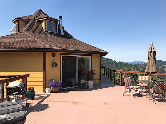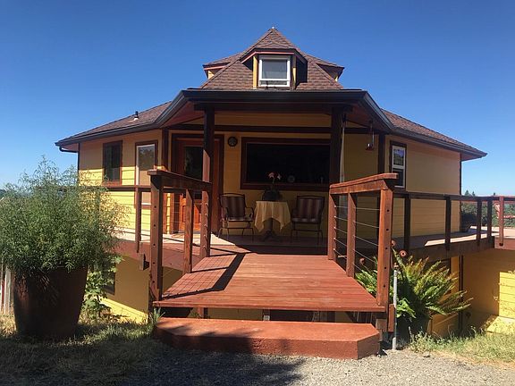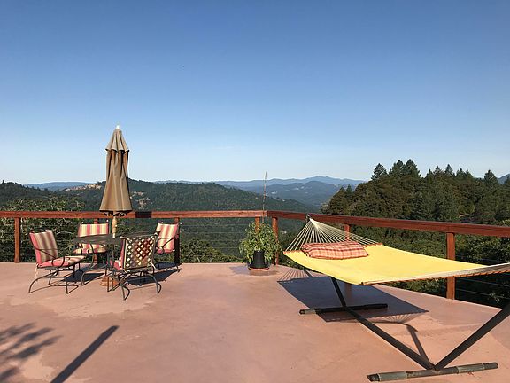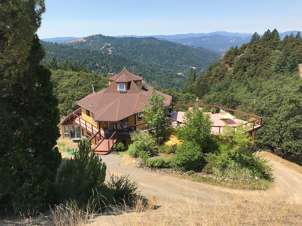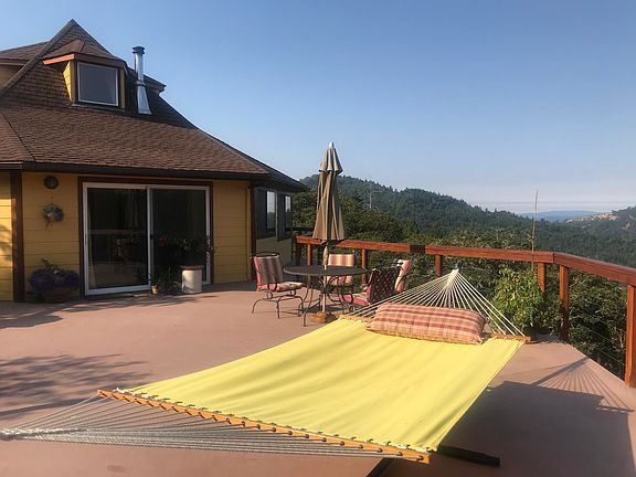 Owner may carry! Humboldt Dream Homestead with two homes! Stunning views of King Range and Bear Buttes! The primary residence is a 2500 sq ft 2-story octagon with a loft - 4 bedrooms, 2 baths and an attached one car garage. The exterior is fireproof Hardyplank with redwood detailing with a surrounding deck surfaced with All-Deck. The attached garage and decks were expertly built by Huber and Sons Construction. From all 8 sides the view is awe-inspiring with no other homes in sight. Upstairs, high ceilings and madrone flooring in the open living and dining/kitchen area, are accented with warm-toned slate tile at the entryway and hearth. In the center of the space is a lovely Waterford woodstove with a mahogany mantle. The kitchen has a new electric Kitchen Aid refrigerator, a vintage Wedgewood propane stove and a walk-in pantry. The master bedroom opens onto a roof deck with a hot tub, heated by a wood-fired Japanese Chofu. The 570 square foot deck is perfect for morning yoga and evening cocktails or bird-watching at any time. An office or nursery is adjacent to the master bedroom. Downstairs, bamboo flooring and blue-grey Italian tiles create a light, modern space throughout. The guest bedroom has a wood stove and soaking tub under the south-facing windows, while an adjacent office with a private deck, takes in the west view. The 4th bedroom has a 3/4 bath. A laundry, pantry, solarium and a door into the generously sized one-car garage fill out the downstairs. Outdoor amenities include a 512 sq ft, light-filled, private art studio in a woodland where the sound of the creek can accompany your creativity. It is fully finished and has wood heat, water and propane. A large shop with 2 parking bays and an attached wood storage shed is nearby. The fenced garden and orchard include 6 large raised beds for veggies, grapes, berries and a delicious variety of mature fruit trees...apples, plums, figs, pears and cherry. The second residence is a 1460 sq ft 2-story cabin - 2 bedroom, 2 baths. It has a large deck on 3 sides with a balcony off the upstairs master bedroom. It has its own driveway with complete visual separation from main house as well as a separately metered propane tank and off-grid power system with solar and hydro-electric power generation. It has its own shop, wood storage, carport, garden and orchard, all within a deer fence. It has been used as a profitable rental for 18 years. Items to note about this spectacular property: -25 minutes from town -2400 foot elevation on Pratt Mountain -Two homes on 40 acres with 2 shops and a spacious art studio. -Spectacular south and west views of the King Range and Bear Butte. -Bird-lovers paradise, over-looking oak-forest canopy with meadows, ponds and a seasonal creek. -Deeded spring water with a Small Domestic Use Registration. -Each home has its own off-grid power system, including solar and micro-hydro power generation. -Each home has a separate garden with water storage, orchard and out-buildings. -Each home has separate internet. -Road association functions well at $400/year This home and property is one of a kind!