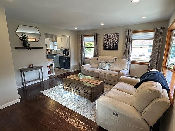 This home features 2 bedrooms, 1 bath, living room, eat in kitchen and a full basement. The kitchen features are updated stainless steel appliances. Range is induction with convection oven and air fry. Concrete countertops with beautiful tile backsplash. Recently updated bathroom with large walk in marble shower, marble counter tops, sky light, and radiant heat. Pine flooring throughout living room and bedrooms. Backyard access through kitchen via 8 ft sliding glass door providing plenty of natural light. Brand new amenities include new roof with 10-year warranty, new oil burner system, new walkways and driveway, and a backyard deck which is great for entertaining. Fenced in backyard with plenty of privacy. This yard has plenty of potential for a backyard oasis. Beautifully maintained property. Detached 1 car garage and plenty of parking space in driveway. This home is located in Kings Park with Smithtown West school district.