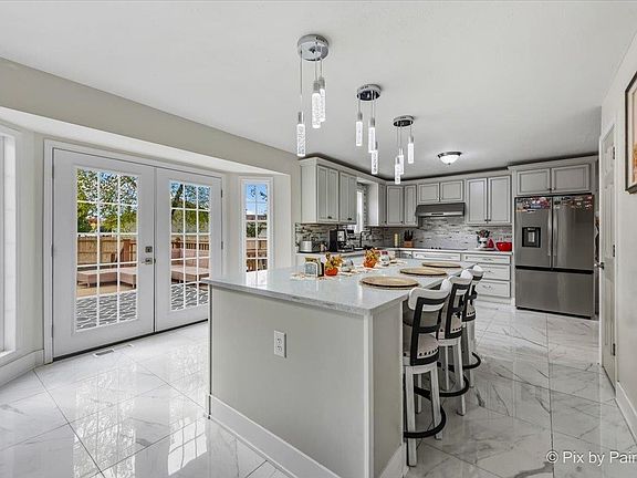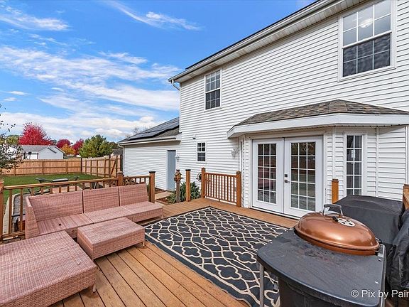 Prepare to be amazed! This stunning 5-bedroom Colonial with over 3,500 sq ft blends timeless elegance with modern luxury! Step inside to a breathtaking open floor plan featuring marble tile throughout the main level, a spacious family room with a wood-burning fireplace, and a designer kitchen that will leave you speechless-completely remodeled with 42" custom cabinets, quartz countertops, high-end stainless steel appliances, a marble backsplash, massive island with breakfast bar, and premium finishes top to bottom. The kitchen also features a brand-new double oven and refrigerator (2024). Upstairs you'll find 4 large bedrooms plus a versatile loft and two full baths, including a serene primary suite. The finished basement offers even more living space with a rec room, wet bar, full bath, office, laundry area, and a fifth bedroom-perfect for guests or extended family. Major updates include owned solar panels (2024), new roof (2023), full privacy fence (2025), fresh interior paint (2025), HVAC & water heater (2022), and a complete kitchen remodel (2023). Enjoy your private backyard oasis with a deck, patio, and 3.5-car insulated garage. Gorgeous curb appeal, concrete driveway, and a prime location close to I-90, top-rated schools, shopping, and dining. This home checks every box-move-in ready, energy-efficient, and absolutely beautiful inside and out! Don't wait-this one won't last!
