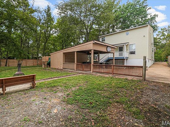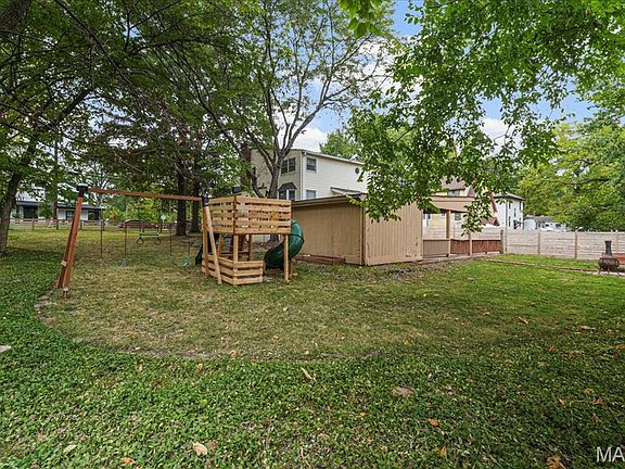 Situated on a spacious double lot, this beautiful home offers both charm and functionality in the heart of Kirkwood. A welcoming front porch sets the tone before stepping inside to a comfortable sitting room with fireplace and elegant staircase. The formal dining room connects seamlessly to the kitchen, while multiple living spaces, including a versatile bonus room- provide options for work, play, or relaxation. Upstairs, the primary suite features custom tile work, a walk-in closet, and is accompanied by three additional bedrooms and a hall bath. The walk-out basement provides a laundry area, cedar closet, and extensive storage. Outdoor living is just as inviting with a fenced yard, fire pit area, hot tub/spa, covered parking, and mature landscaping that ensures privacy. All appliances are new (refrigerator and spa stay), and the home is equipped with newer HVAC and water heater. Conveniently located within walking distance to Kirkwood Park, the pool, The Magic House, and local favorites like Peppe’s Apt 2.