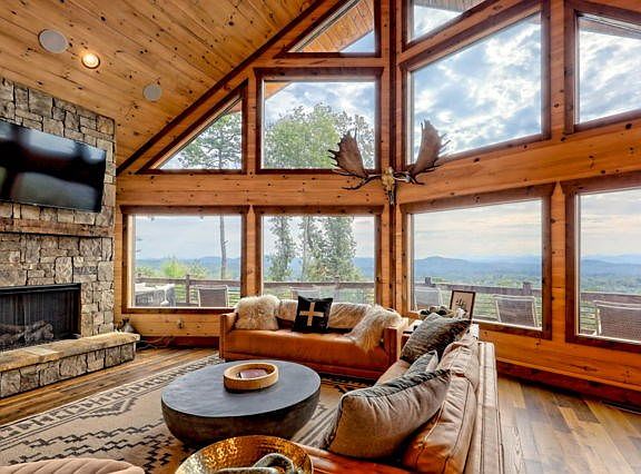 Perched amidst the breathtaking North Georgia mountains, 558 Tower Rd in Mineral Bluff is the epitome of refined luxury and mountain elegance. This meticulously crafted, fully furnished estate blends rustic charm with modern sophistication, featuring expansive living spaces adorned with rich hardwoods, vaulted ceilings, and floor-to-ceiling windows that frame awe-inspiring panoramic views. The gourmet kitchen, complete with high-end appliances and custom cabinetry, invites culinary creativity, while the grand stone fireplace creates a focal point for gatherings in the lavish great room. The primary suite is a true sanctuary, boasting spa-like amenities and private access to nature's beauty. The finished terrace level offers additional bedrooms and living space, perfect for hosting guests or creating a cozy retreat. Step outside to the sprawling deck, where you can unwind in the fresh mountain air or entertain guests with unmatched vistas as your backdrop. For those who crave both adventure and indulgence, this luxurious retreat offers proximity to world-class hiking, trout fishing, and the charm of Blue Ridge's finest dining and boutiques. At 558 Tower Rd, every moment is an invitation to experience the pinnacle of mountain living.