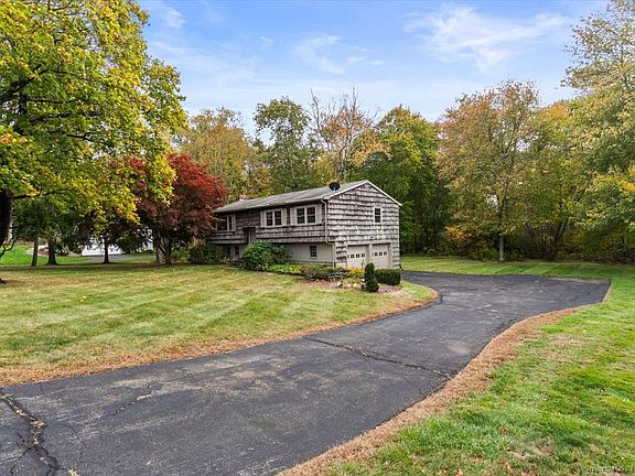Nestled in the desirable Grassy Hill Golf Course neighborhood, this lovingly maintained raised ranch is ready for its next chapter. Set on a serene, tree-lined and professionally landscaped lot, the home offers a peaceful retreat while remaining conveniently close to major routes and area amenities. The main level features gleaming hardwood floors throughout, including all bedrooms, and a spacious living area highlighted by a wood-burning fireplace-perfect for cozy winter evenings. Sliders open to a covered deck overlooking the tranquil backyard, ideal for relaxing or entertaining. The lower level provides additional living space with its own wood-burning fireplace, sliders to a private patio, and direct access to the rear yard. With just a touch of updating, this charming home will truly shine and provide years of enjoyment. A rare find near Route 121, offering easy access to Milford, Derby, New Haven, Route 34, Yale University and Hospital System, Downtown New Haven, and Griffin Hospital. Come discover the warmth and potential of this hidden gem-you'll fall in love the moment you arrive.