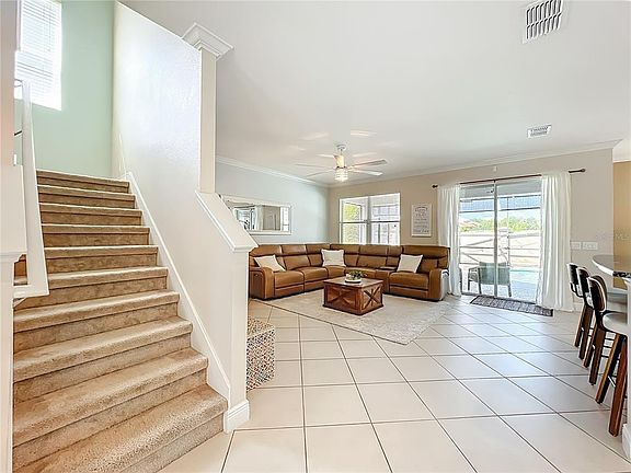 Spacious 4-bedroom, 3-bath pool home located in the Maudehelen community of Apopka. This two-story residence offers over 2,600 square feet of living space with a functional layout. The main level includes formal living and dining rooms, a large family room, and an open kitchen featuring granite countertops, 42" espresso cabinets, stainless steel appliances, and a center island. A breakfast nook adjoins the kitchen and overlooks the family room. The second floor features an oversized owner’s suite with dual walk-in closets and an en-suite bath including a soaking tub, separate shower, and dual vanities. Three additional bedrooms and an upstairs laundry room provide convenience and flexibility. The backyard is designed for outdoor enjoyment, featuring a covered lanai and a screened-in, in-ground pool with a spacious deck area ideal for lounging or entertaining. The fully fenced yard offers privacy and room for recreation or pets. Additional features include a three-car garage and energy-efficient windows. Located on a quiet street near parks, schools, shopping, and major highways including SR 429. Nearby natural attractions include Wekiwa Springs State Park, Lake Apopka Wildlife Drive, and downtown Apopka.