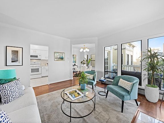 Discover this stylish 2-bedroom, 2-bathroom condo on the coveted north slope of sunny Potrero Hill. This bright and airy home boasts an open floor plan with partial Downtown and Bay Bridge views from the living room, dining area, kitchen, and private balcony. The spacious primary suite features two closets and an en-suite bath, while the generously sized second bedroom offers ample storage and an adjacent full bathroom. Additional highlights include in-unit laundry, one-car secured garage parking, and a private storage room. Located in the highly desirable Victoria Mews, residents enjoy resort-style amenities, including a pool, spa, sauna, gym, tennis courts, clubroom, and beautifully landscaped gardens with tranquil streams. Just moments from neighborhood favorites like Whole Foods, local restaurants, and shops, plus easy access to 101, 280, and Caltrain, this home blends urban convenience with serene living.