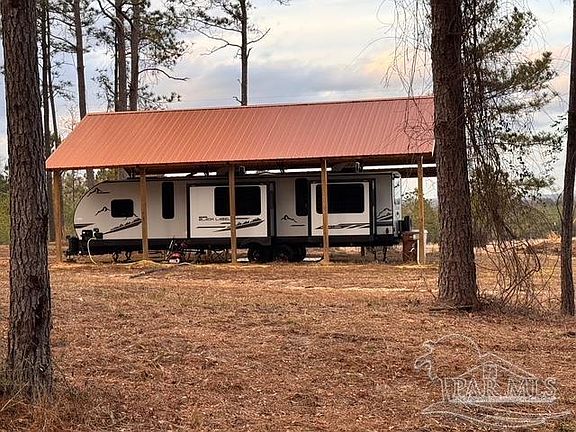 This place is a MUST SEE to appreciate its beauty and peaceful feel. Beautiful 7.5 acres mostly cleared with a half mile track around the perimeter for walking, hiking or horseback riding. 2 acres of the property are cleared and completely fenced for horses or cattle. The property has a newly installed pole barn (2024) with an overhang for a porch. The pole barn is built to "residential" specifications and can be easily converted to barndominium. The beautiful 40 ft 2023 Forest River Cherokee Black Label RV conveys with the purchase of the land. It has 2 slide outs with sofas, two recliners, full kitchen, large luxurious shower in a full bath with a queen size bed!! There is even room for a washer and dryer in the bedroom linen closet. There is an outdoor kitchen with an outdoor TV. A separate well/pump house has a well and washer and dryer that will convey. There are 2 Prefiert outdoor kennels for your pets and a decent sized fenced in yard for them adjacent to the well/pump house.