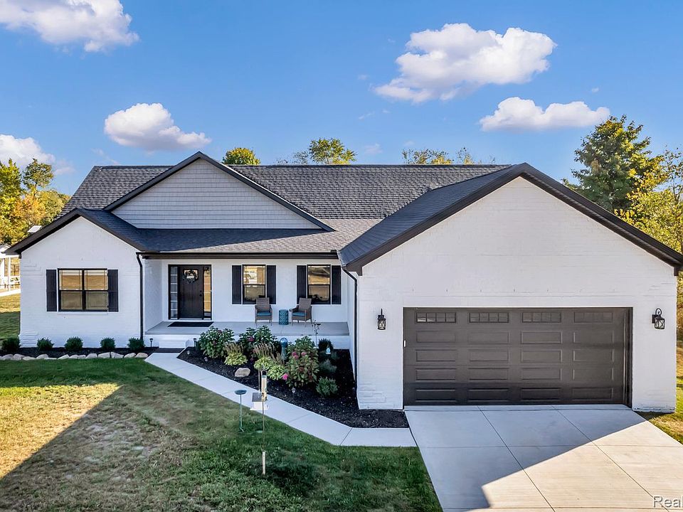 Welcome to this recently built modern farmhouse nestled on over 3 acres of serene, private land. Beautifully and functionally designed, this home offers open concept living with high end finishes throughout. A dramatic cathedral ceiling defines the light filled kitchen, living and dining areas. Whether you're making family meals or entertaining friends, you'll appreciate the stainless steel appliances, quartz countertops and spacious pantry for their ease of use. A split bedroom plan offers privacy and convenience for both family and guests and a first-floor laundry room just steps from the kitchen offers enhanced accessibility to quickly handle life's little messes. The finished basement features versatile living space for a family room, home office, hobby space, guest room, home gym - whatever you desire! The true magic of this property is when you step outside your dining room door wall into the 20' x 24' covered lanai. It's a stunning three-season space featuring a vaulted wood ceiling and overlooking a sparkling, heated pool with fountains and a fenced in back yard. The back yard features a play house to inspire fun and games as well as a shed to store any lawn or gardening equipment. Some of the property has been left wild and is home to abundant wildlife including deer, turkey, rabbits and many varieties of birds including hummingbirds. Enjoy peaceful seclusion, room to roam and serene views from every window. This property is a rare blend of comfort, space and natural beauty! Schedule your tour today!