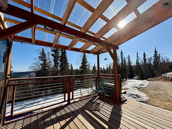 If privacy and space are at the top of your list, welcome to 5582 Cascade—a true Alaskan retreat! This charming 3-bedroom, 1-bathroom home offers everything you need for a comfortable, out-of-town lifestyle. Step inside to an open-concept kitchen and living area, warmed by a cozy woodstove that provides heat throughout the home. From both the kitchen and downstairs bedroom, enjoy breathtaking views of the majestic Alaska Range. The home is super-efficient with furred out exterior walls. It also features durable, composite flooring throughout. Upstairs, you’ll find two additional bedrooms and a bright, airy office or studio space, bathed in natural light and offering stunning vistas of nearby domes, valleys, and distant mountains. The primary bedroom has a large closet and private deck! Outside, the property is just as impressive. Enjoy a carport, greenhouse, shed, and sauna, along with a terraced slope perfect for gardening. A natural spring on the property supplies high-quality water, ideal for garden use and even feeding a pond—perfect for summertime cooling. Enjoy epic mountain views from the deck, and to top it all off, the home features a brand-new roof! Schedule your showing today!
