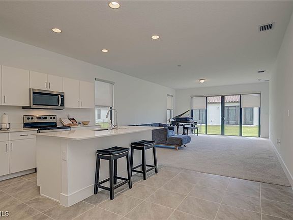 Welcome to a charming home situated on a corner lot in the heart of Ave Maria. This 3-bedroom, 2-bathroom residence, with approximately 1,602 sq ft, greets you with sun-bathed interiors and a thoughtful open layout ideal for living and entertaining. The kitchen features quartz counters, stainless appliances, ample storage, flowing seamlessly into dining and living areas. Installed solar panels provide energy savings while the impact windows offer peace of mind. Outside, enjoy extra yard space, enhanced privacy, and excellent curb appeal unique to a corner homesite. Relax or entertain on the open patio or in the backyard, and take advantage of nearby community amenities: parks, trails, shops and dining at Town Center, and the lifestyle-rich setting of Ave Maria. A warm, efficient, move-in-ready home—schedule your private showing today!