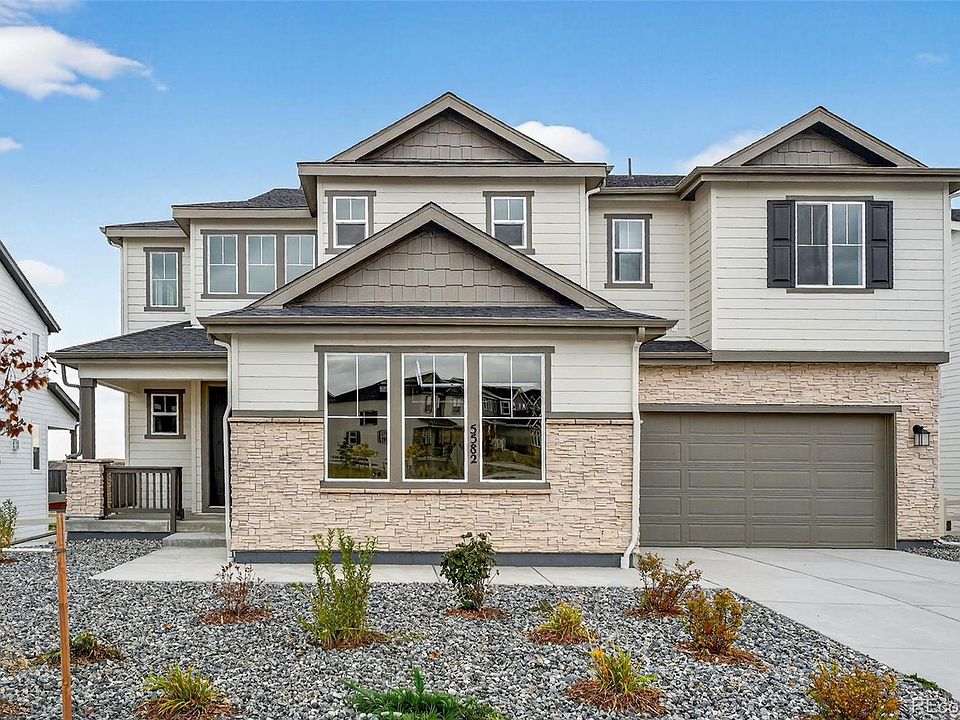 New Construction - Ready Now! Built by America's Most Trusted Homebuilder. Welcome to the Keystone II at 5582 Farrier Point in Hillside at Crystal Valley Destination Collection! Step inside from the front porch to an inviting foyer with a private study, half bath, and versatile flex space. The grand great room impresses with vaulted ceilings and flows into a spacious kitchen with an eat-in island and walk-in pantry. Upstairs, you’ll find two secondary bedrooms—one with an ensuite bath—plus a shared full bath, loft, and laundry. The tucked-away primary suite offers a spa-inspired bath and walk-in closet for the perfect retreat. This community combines oversized lots, preserved open space, and award-winning Douglas County Schools with resort-style amenities like a fitness center, pool, trails, and parks—all just minutes from Castle Rock’s vibrant downtown and I-25. Additional Highlights Include: Shower in place of tub at bath 2, sliding glass doors with center meet sliders at great room, modern fireplace, double 8' glass doors at flex, shower and freestanding tub at primary bath, covered outdoor living, and glass wall at study.