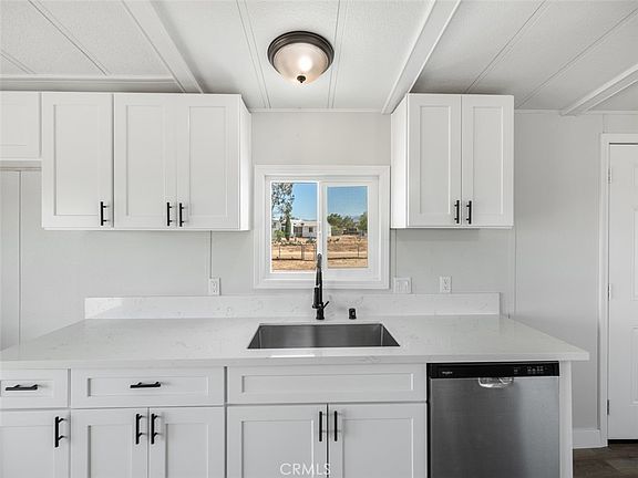 Fully renovated and move in ready manufactured home with 2 bedrooms and 1 bathroom with a detached, oversized 2 car garage on 2.2 +/- acres of land all fenced. This home has been entirely remodeled from top to bottom with a new roof, new windows, brand new kitchen (cabinets, quartz counters, appliances and fixtures), brand new bathrooms, new laminate wood flooring throughout with carpet in the bedrooms, new exterior and interior paint, and a renovation to the garage too. The garage has a double roll up door, but is set up with a shop space next to it making it 720 +/- sq ft. This modernized home is the perfect place to call home whether this is your first home or your are looking to downsize. Located in the rural and private community of Phelan you'll enjoy the peaceful setting with beautiful views of the mountain to the south. Property is zoned for horses and located in the Snow Line School District.