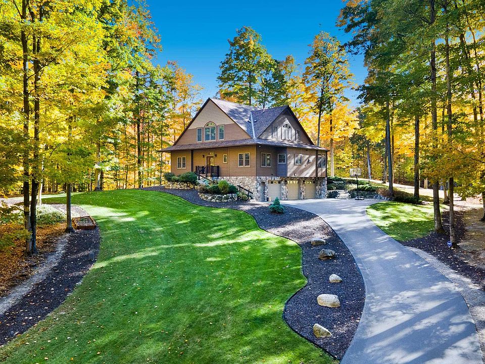 Stunning views of the 16th fairway of the Cedar River Golf Course will be yours from this appealing, & thoughtfully engineered, 4 BR 3 BA custom home. Notice the manicured grounds, exquisite landscaping & private setting. With a commanding presence & offering wonderful views, the home offers plentiful space for everyone yet feels cozy & inviting with a natural flow. The living room is adorned w/a gas fireplace, thermostatically controlled to provide heat, & a wet bar when you entertain. Surrounding the living room, you’ll find the sunroom, kitchen, dining room & office. The sunroom is heated by a gas stove, accented w/ bead board ceiling, & will become a favored space with its natural views. The kitchen offers coordinating granite counters, island w/cooktop & snack bar, French door fridge, double oven & desk. The breakfast nook enjoys natural light & the dining room offers space to entertain. The office has views of the course & is equally suitable as a guest BR w/the adjacent bath. Upstairs you’ll find the spacious primary suite w/2 walk-in closets, a Jacuzzi tub, dual sinks, tile shower, & water closet. There’s even a clothes chute to conveniently deliver laundry to the main floor laundry room. Two guest bedrooms & a full BA complete this floor. Notice the attention to detail, quality materials & use of every nook & cranny to maximize storage. Outside, you’ll enjoy the paver patio & composite deck w/powered awning for shade. On the lower level are the exercise & mechanical rooms & a large workshop, ingeniously heated by a duct from the living room fireplace. Thoughtfully located, the 3+ car garage beneath the house maintains a moderate temperature year-round. For convenience, a power dumbwaiter runs from the garage to the kitchen. This home is the epitome of intelligent engineering & attention to detail. Make it yours & enjoy yr-round activities, such as nearby golf, skiing, or the pool at the main lodge, & some of the finest lakes in the state just minutes away.