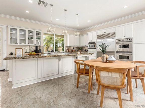Canyon Views | Designer Upgrades | Prime Carmel Valley Location Welcome to your private sanctuary in one of Carmel Valley’s most coveted gated communities, perched at the end of a quiet cul-de-sac with uninterrupted canyon & mountain views. This exquisitely upgraded home offers resort-style living, privacy, & over $300,000 in recent renovations—inside & out. Step into a sunlit interior thoughtfully oriented to maximize natural light without the heat. The open layout flows seamlessly from the chef’s kitchen—featuring Viking stainless steel appliances, refinished cabinetry, & granite countertops—to expansive living spaces adorned with new luxury wood & white tile flooring, plantation shutters, & LED recessed lighting throughout. Outside, the entertainer’s dream backyard awaits: a tranquil retreat with a sparkling pool, spa with waterfall feature, built-in BBQ, gas fireplace, & lush landscaping—all designed for year-round relaxation & unforgettable gatherings. Property Highlights: Gated community with no through traffic Tesla EV charger and 3-car garage with extra off-street parking High-efficiency solar system 360° security system for peace of mind Quiet cul-de-sac location — no road noise Endless canyon views and total privacy Unbeatable Location: Stroll just a half mile to Pacific Highlands Ranch Village, with Trader Joe’s, fitness studios, restaurants, and more. Enjoy walking distance to Top Rated Solana Ranch Elementary, Pacific Trails Middle School, Canyon Crest Academy and Cathedral Catholic High School Highly upgraded | Gated community | 3-car garage | Solar | Pool & spa | Canyon views | Walk to top schools. List of Upgrades: All-New Tile Flooring on the main level. Brand New Luxury Wood Flooring throughout the upstairs. Fresh Interior Paint throughout the entire home Upgraded Recessed LED Lighting in every room. New Baseboards in most areas. Upgraded Upstairs Bathrooms (excluding the master) featuring new quartz countertops, modern sinks, premium faucet hardware, and new flooring. Polished Travertine Flooring in the master bathroom. New Glass Shower Enclosure in the master bath. New Emergency Gas Shut-Off Line for added safety. Smart Moen Automatic Water Shutoff System installed. Leased Solar Energy System ($183/month, fixed rate through 04/20/2035) Upgraded Drainage with New French Drain Covers. New Smoke & Fire Alarms New Wood Side Entry Gates. Concrete Surfaces Power-Washed (front and back yards) Exterior 360° Security System (ready to connect) Ring Doorbell & Backyard Camera (requires Ring Hub) New Tesla EV Wall Charger installed in the garage. Brand New Pool Robot Cleaner. Upgraded Pool Filtration System. New Fireplace Tile & Mantles on both levels. Refurbished Pergola with termite-treated wood. Fresh Landscaping featuring new magnolia and fir trees in the front and side yards. New Washer & Dryer. New Ceiling Fans in all bedrooms and the family room.