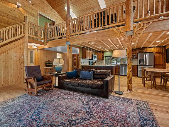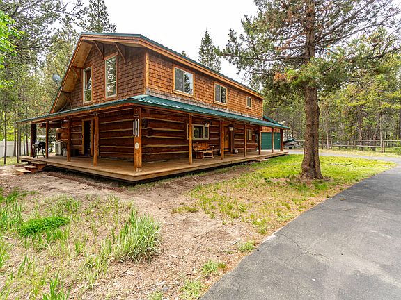 This distinctive Oregon Water Wonderland home is filled with artistic flourishes and rustic touches that enhance its connection with this remarkable neighborhood that provides access to the Deschutes River & is just minutes from the endless National Forest land just beyond the neighborhood. Enjoy cool summer days on the wrap around deck & cozy evenings in the spacious great room with towering wood lined ceilings. A roomy kitchen includes a generous expanse of granite counters with tile backsplash & stainless steel appliances. A large open loft adds plenty of extra living space & leads to a light-filled primary suite with wood lined vaulted ceilings, walk-in closet & bathroom with separate tub & tile shower. On over half an acre, this property is fully fenced with 2 gated entries & a large garage/shop, ready for all your projects. Immersed in the beauty of Central Oregon, this home is perfect for seasonal or year-round living, just 6 miles to Sunriver and 24 miles to Mt. Bachelor.