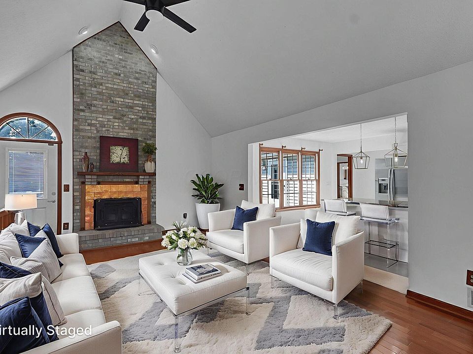 Welcome home to this gorgeous ranch nestled on nearly 5 acres, complete with a long, scenic driveway that leads you to a welcoming front porch perfect for relaxing evenings. Step inside the foyer and be greeted by soaring ceilings and a warm, light-filled living area accented by a striking fireplace.