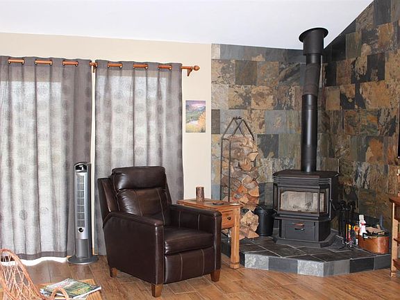 Views of lake hatcherBack deckExtra storageKitchen barWood burning fireplaceOpen conceptTiled wood floors