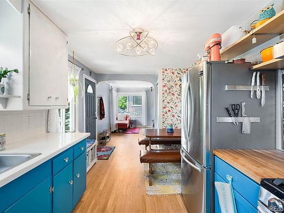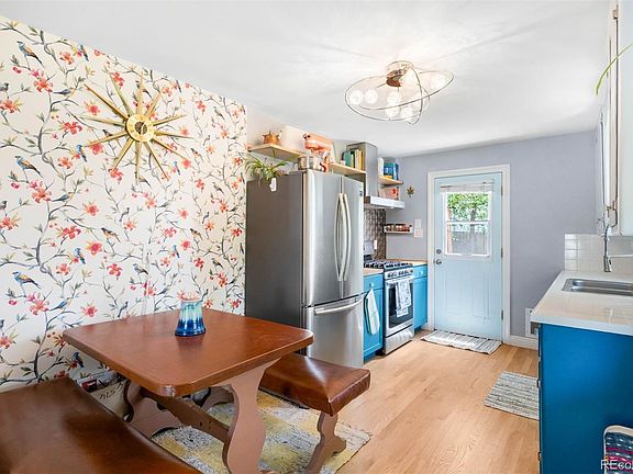 This charming cottage offers irresistible curb appeal with stunning landscaping, vibrant flowers, and a unique sage-colored fence. The inviting front porch welcomes you into a light-filled home with a warm, inviting atmosphere. The remodeled kitchen is a standout, with new butcher block countertops, freshly repainted cabinets, a new backsplash, and colorful wallpaper that adds a fun, vibrant touch. Throughout the home, refinished floors add to the charm and warmth. The spacious primary bedroom is located adjacent to the beautifully updated bathroom. The second bedroom is non-conforming but versatile, perfect for a nursery, office, or a cozy guest room with space for a twin bed.