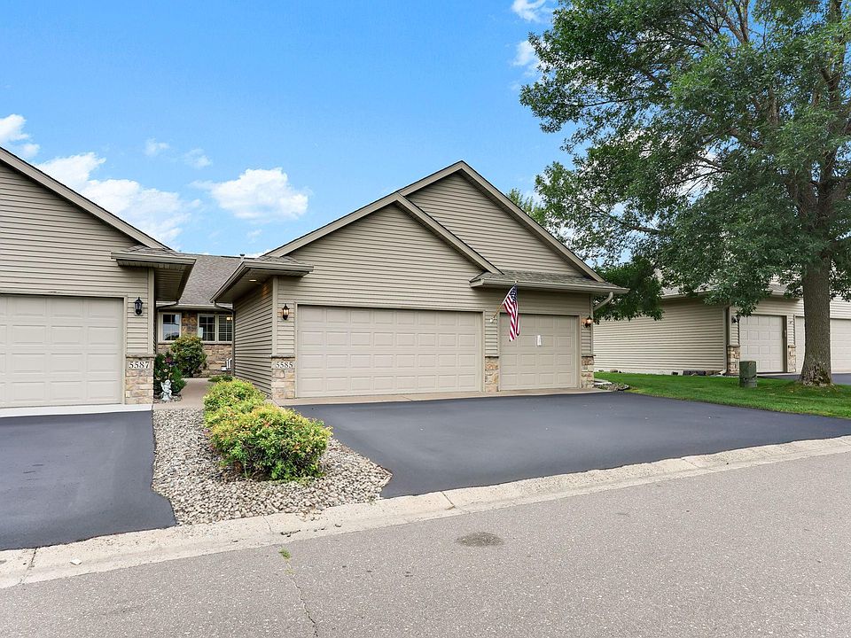 Spacious & Sun-Filled Home with Pond Views! Welcome to this beautifully maintained home featuring vaulted ceilings and a sun-drenched living room with a large picture window and remote-control blinds. Enjoy seamless indoor-outdoor living with a walkout to the elevated deck overlooking a peaceful pond — perfect for relaxing or entertaining. The spacious kitchen offers abundant cabinetry and storage, ideal for the home chef. The main-floor primary suite is generously sized and includes a walk-in closet and a private bath complete with a separate tub and shower. Downstairs, a large walkout family room with a cozy fireplace opens to a private patio, while a separate storage area provides plenty of space for seasonal or long-term items. Enjoy energy efficiency and natural light year-round with the south-facing back of the home. Recent mechanical updates include a new roof (2024), furnace and AC (2020), and washer and dryer (2023) — offering peace of mind for years to come. Additional features include: 3-car garage for extra parking or workshop needs, custom paint in the living and dining areas and scenic views of the ponding area from multiple rooms. Don’t miss this opportunity to own a warm, inviting home in a tranquil setting!